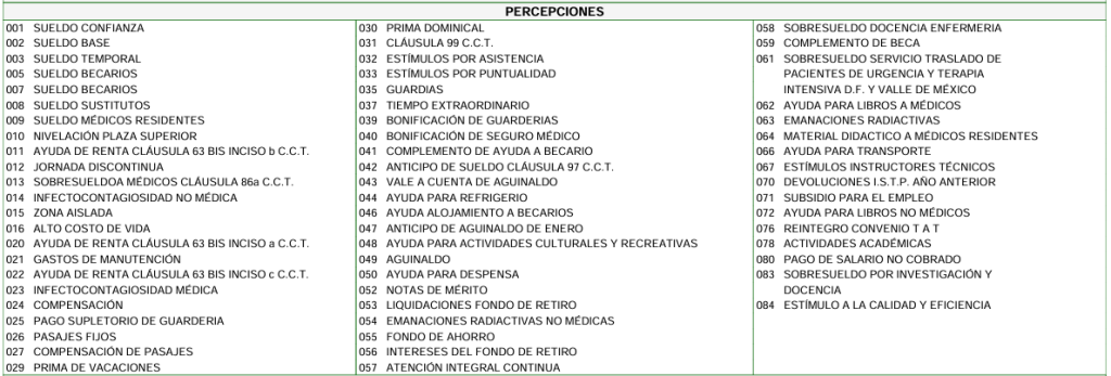 CONCEPTOS QUE SE PAGAN (PERCEPCIONES)