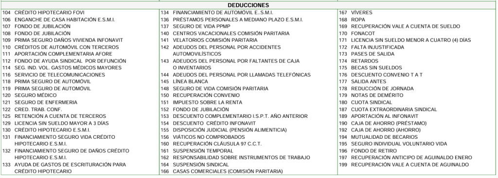 CONCEPTOS QUE SE DESCUENTAN (DEDUCCIONES)